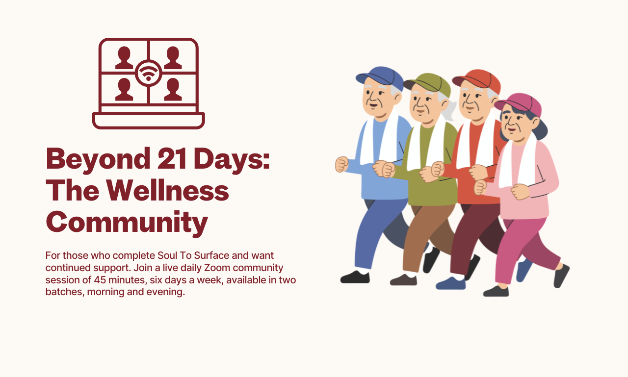 Start with the 7-Day Soul Reset for ₹249 and experience what working with your body actually feels like. If it resonates, the 21-Day Soul To Surface program is your next step, and those who come through the 7-day program receive a 20% discount automatically.